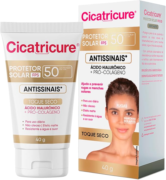 Protetor solar facial antiidade, antirugas com proteção uva, uvb e ácido hialurônico.