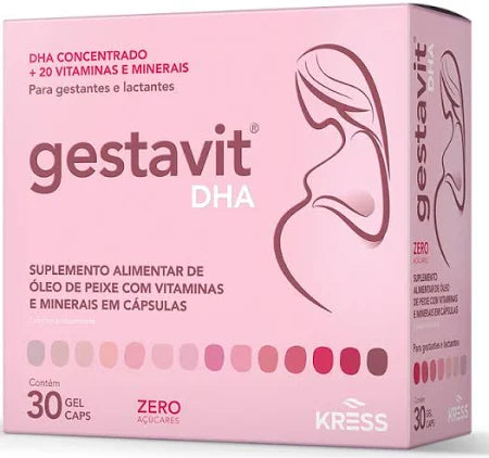 O Gestavit DHA é um suplemento alimentar em cápsulas gelatinosas especialmente desenvolvido para gestantes e lactantes, oferecendo uma combinação completa de DHA concentrado, vitaminas e minerais essenciais para a saúde da mãe e o desenvolvimento do bebê.