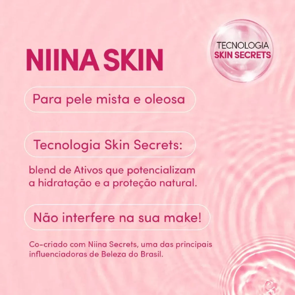 O segredo dos produtos de skincare Niina Skin foi revelado: sua tecnologia skin secrets traz um exclusivo blend de ativos dermatológicos que potencializam a hidratação e equilíbrio natural da barreira da pele: Niacinamida, a vitamina de Niina + Pentilenoglicol da Cana de Açúcar. Sua fórmula ultraconcentrada com rápida absorção fará você sentir a diferença na hidratação da pele rapidamente.