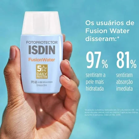 O ISDIN Fusion Water também é não comedogênico (não obstrui os poros), possui efeito matificante e não irrita os olhos, sendo ideal para peles sensíveis, oleosas ou acneicas. É perfeito para o uso diário, inclusive sob a maquiagem, mantendo a pele protegida, sequinha e com aparência natural.